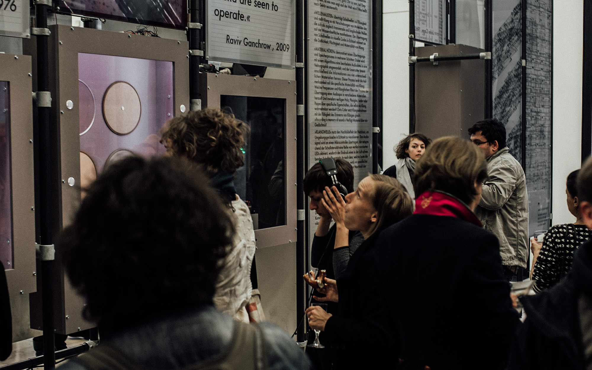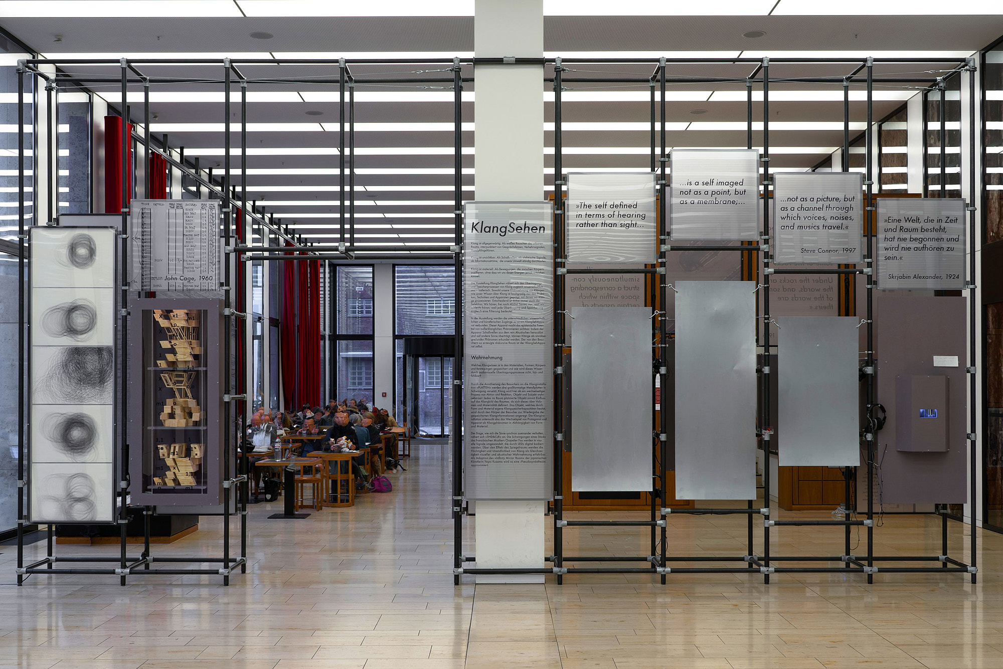 Die Ausstellung im Foyer des Grimm-Zentrums zeigt einen Auszug aus der am Cluster stattfindenden interdisziplinären Auseinandersetzung mit Klang und den Möglichkeiten seiner Visualisierung. Es geht um die Relation von Wahrnehmung, Darstellung und Wissen.